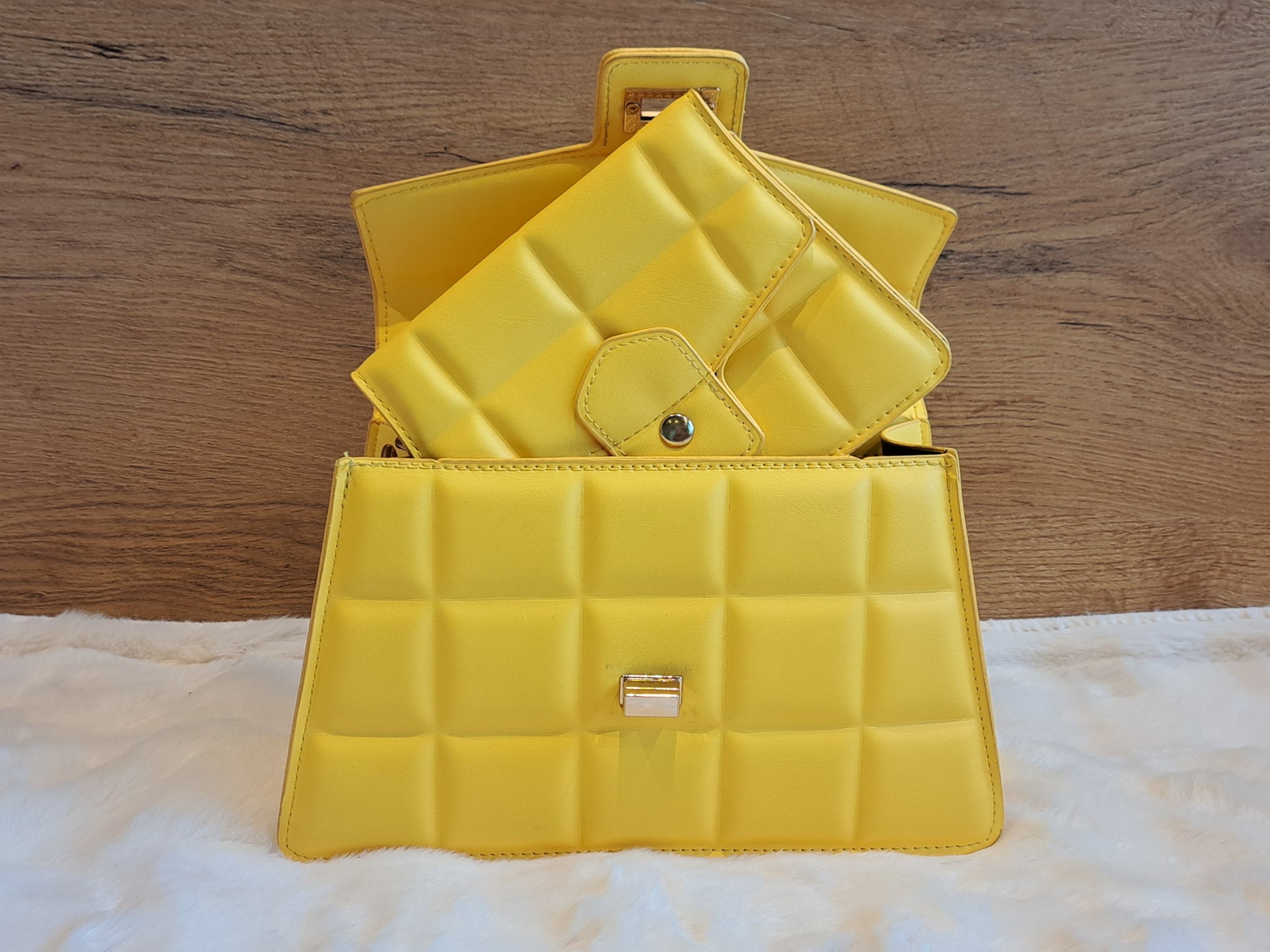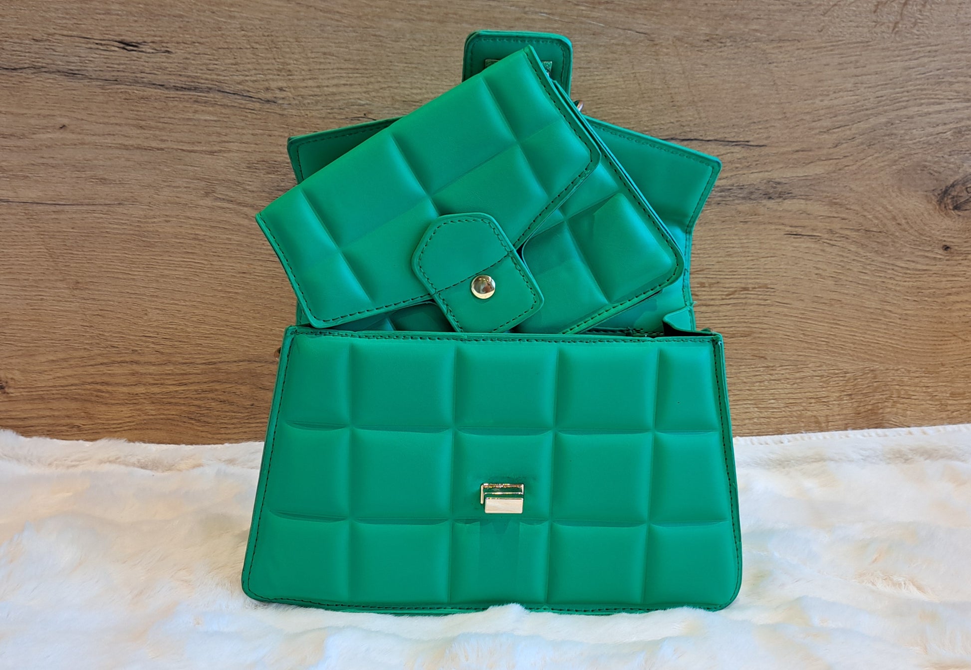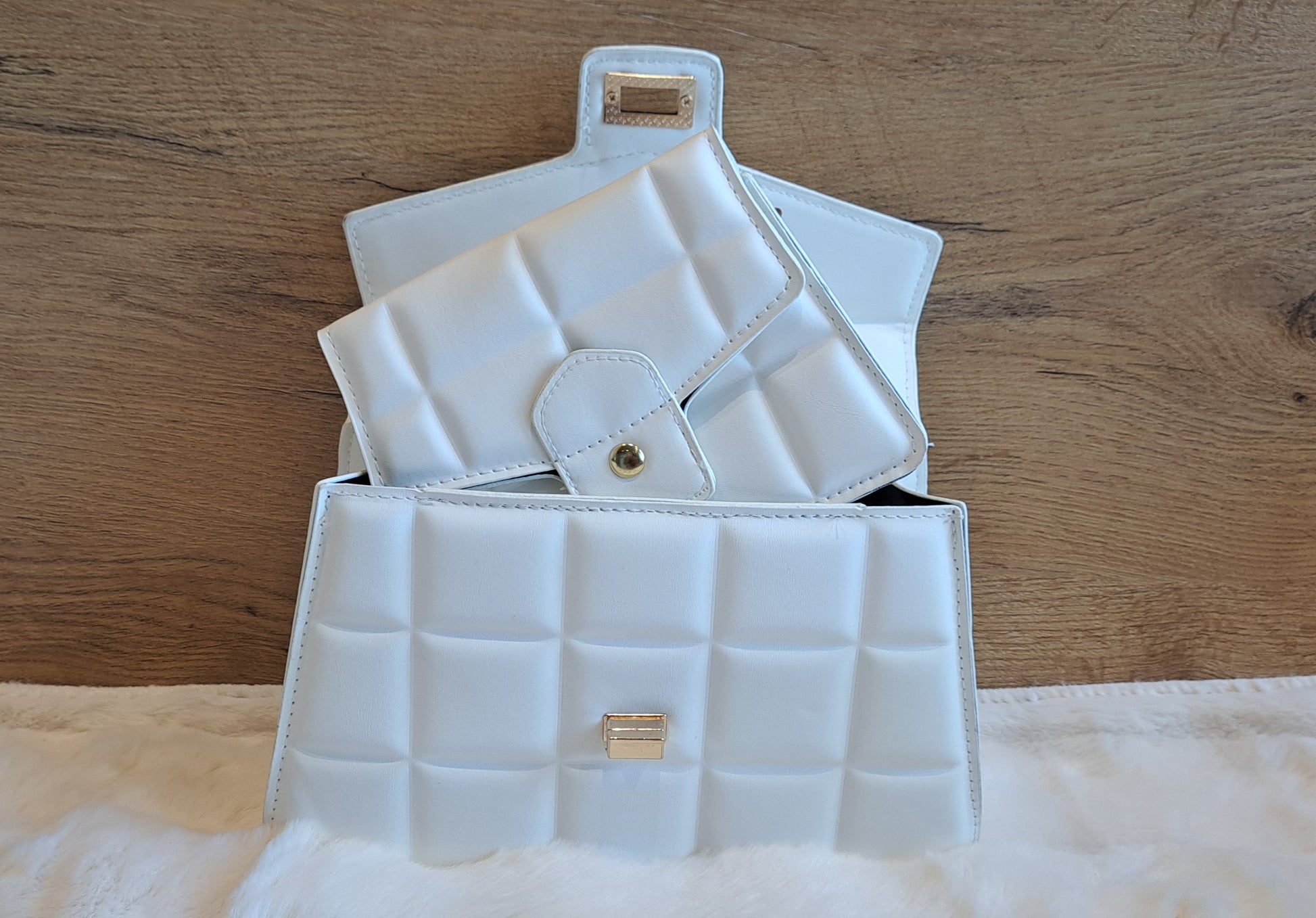 Wat een chique duo is dit! Deze Two Day tassenset is maar liefst in vijf trendy kleuren verkrijgbaar. De grotere tas, met het stevige handvat en de draaisluiting, is ideaal voor een elegante look. De kleinere tas, met de gouden schakelketting, is perfect als crossbody of schoudertas voor een avondje uit of wanneer je alleen je telefoon en pasjes nodig hebt.